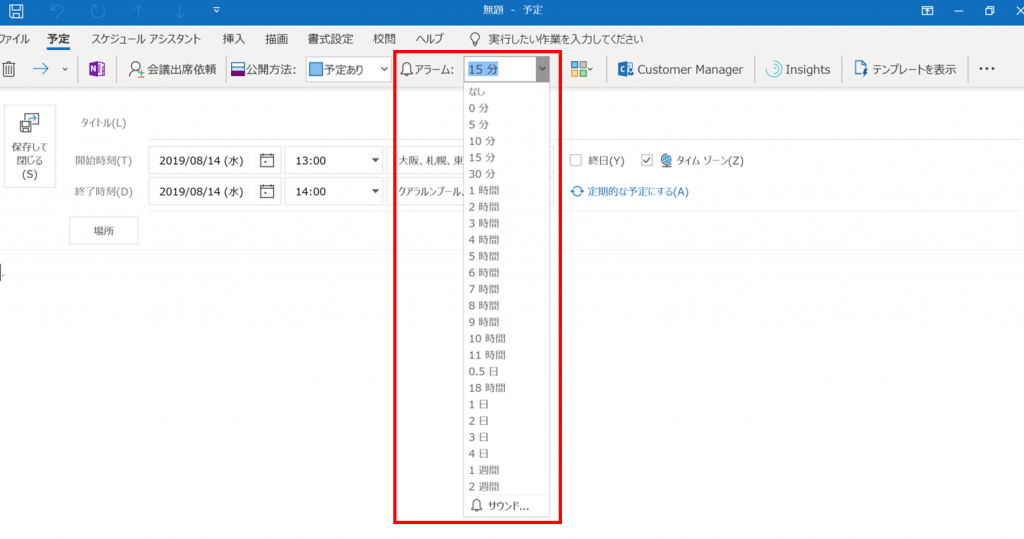 何かの予定のためにアラームを設定する場合、私は直前の予定内容によってアラームの設定を決めています。例えば直前の予定が会議だった場合、次の予定の15分前にアラームを設定することで、それを見た上司は余裕を持って会議をまとめ、移動をして次の予定に備えることができます。