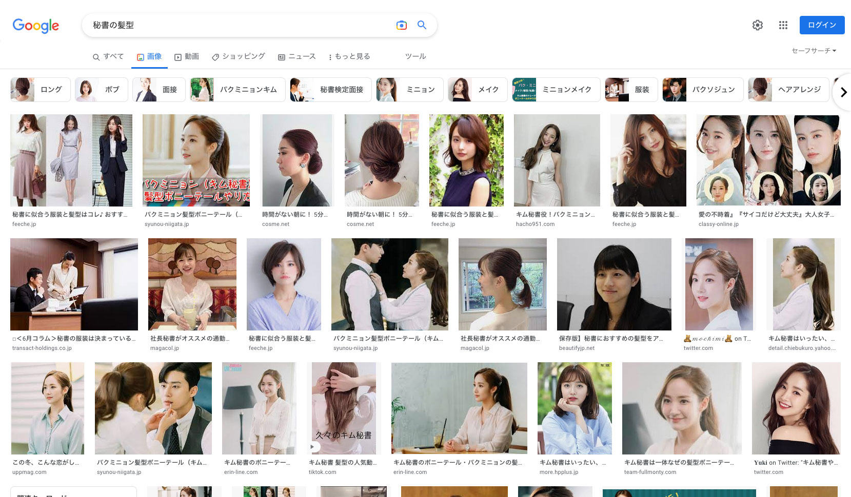 ふと疑問に思って、「秘書の髪型」で検索してみました。