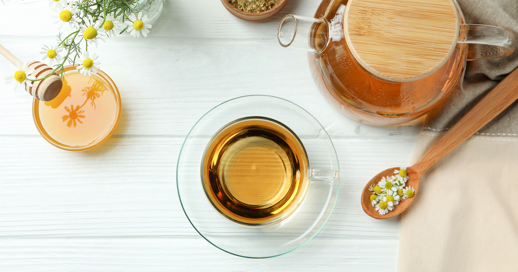 よく飲むのは、心身をリラックスさせる効果が高いといわれる「カモミール」や、緊張・不安・イライラを取り除くといわれる「リンデンフラワー」など。
