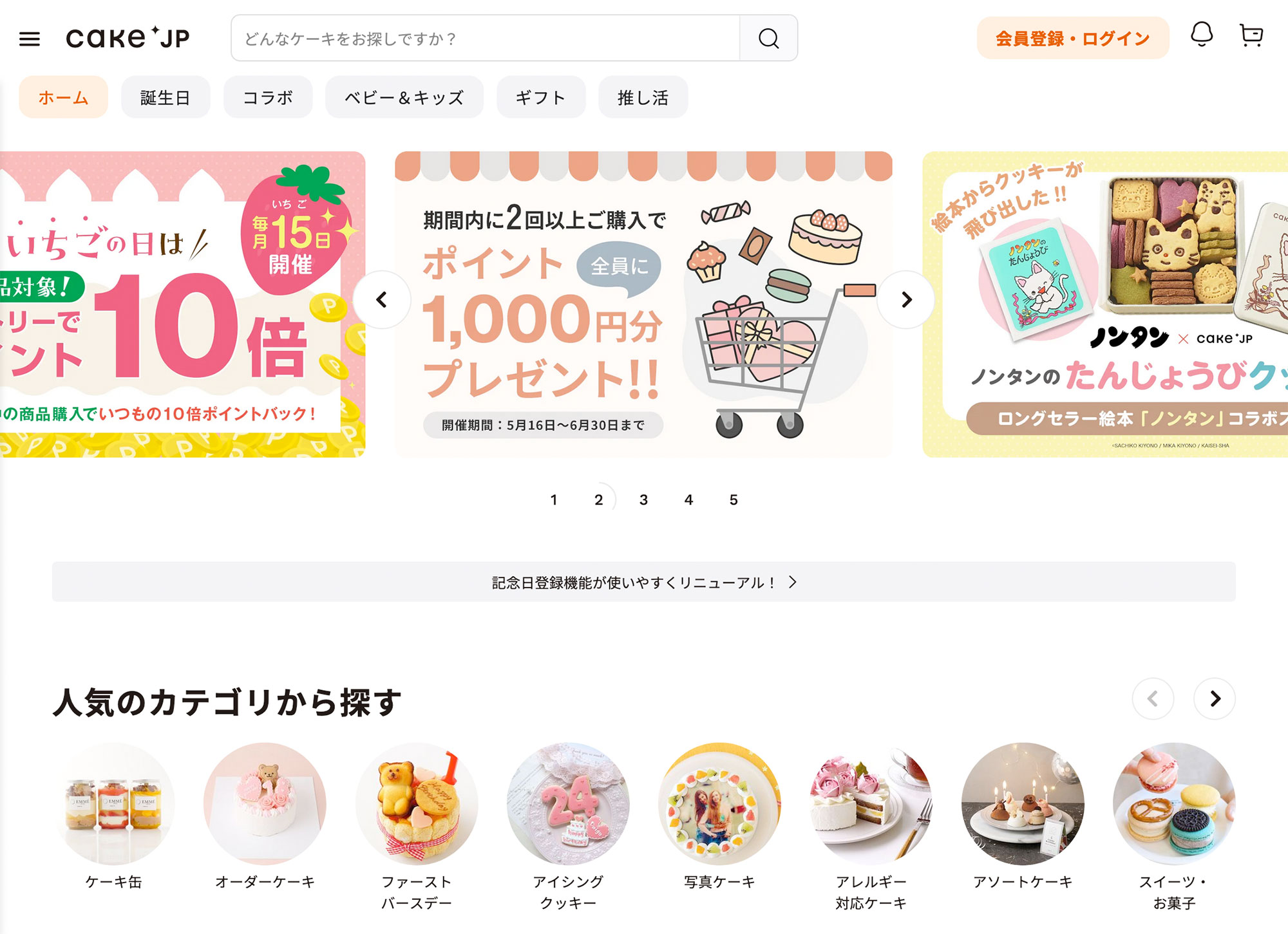 こちらはケーキ専門の通販サイトで、各地のケーキ屋さんと提携して、全国どこにでも冷凍でケーキを届けてくれるサービスなんです。