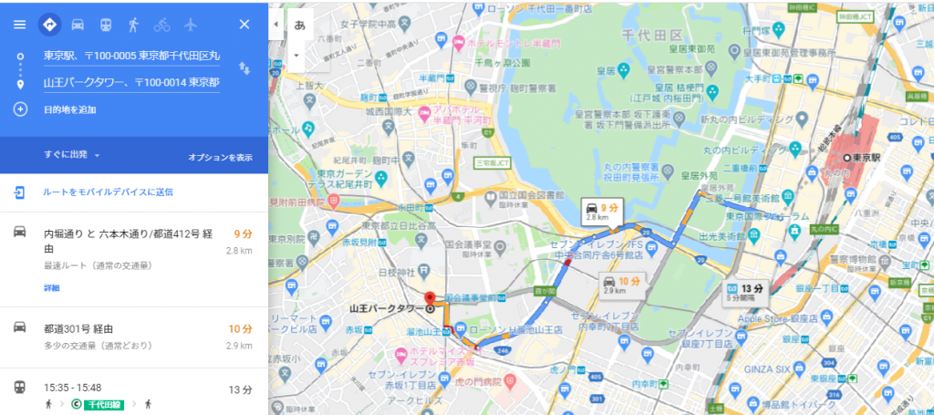 このように、今はGoogle mapで移動時間もわかりますし、出張先でのかなり詳細な移動時間を旅程表に記載できます。