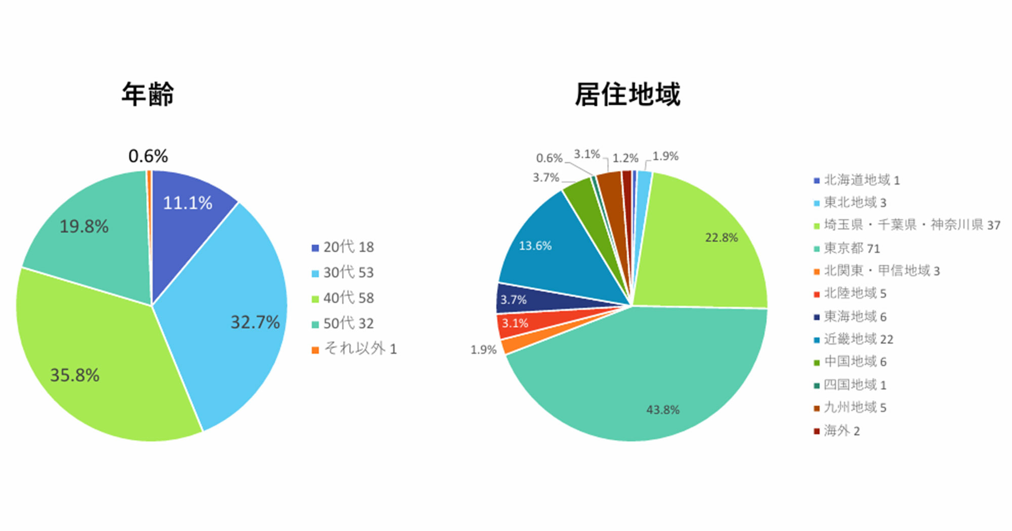 また、居住地域を見ると、やはり東京都が圧倒的に多く、関東圏(埼玉・千葉・神奈川)を合わせると全体の半数以上を占めています。