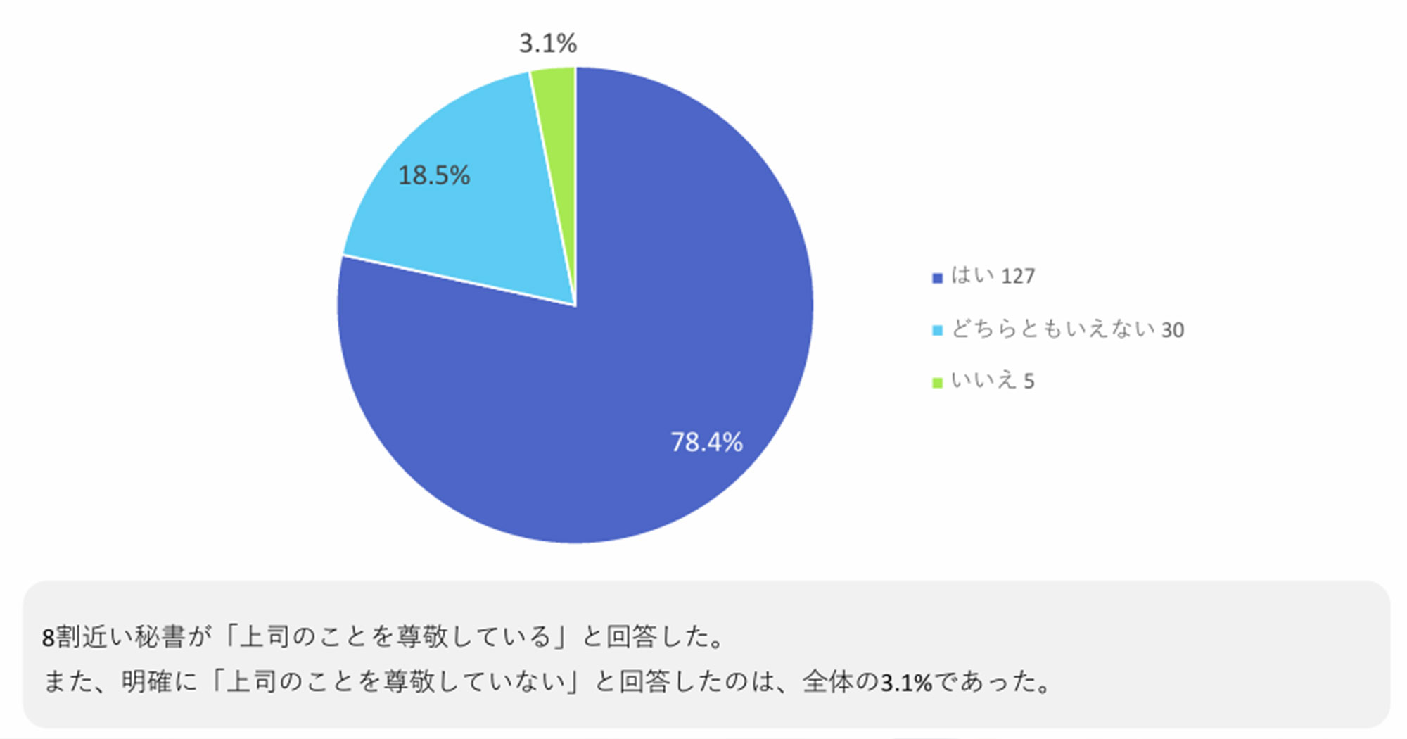 「今の上司のことを尊敬していますか?」という質問に対しては、約8割の秘書さんが「はい」と回答していました。