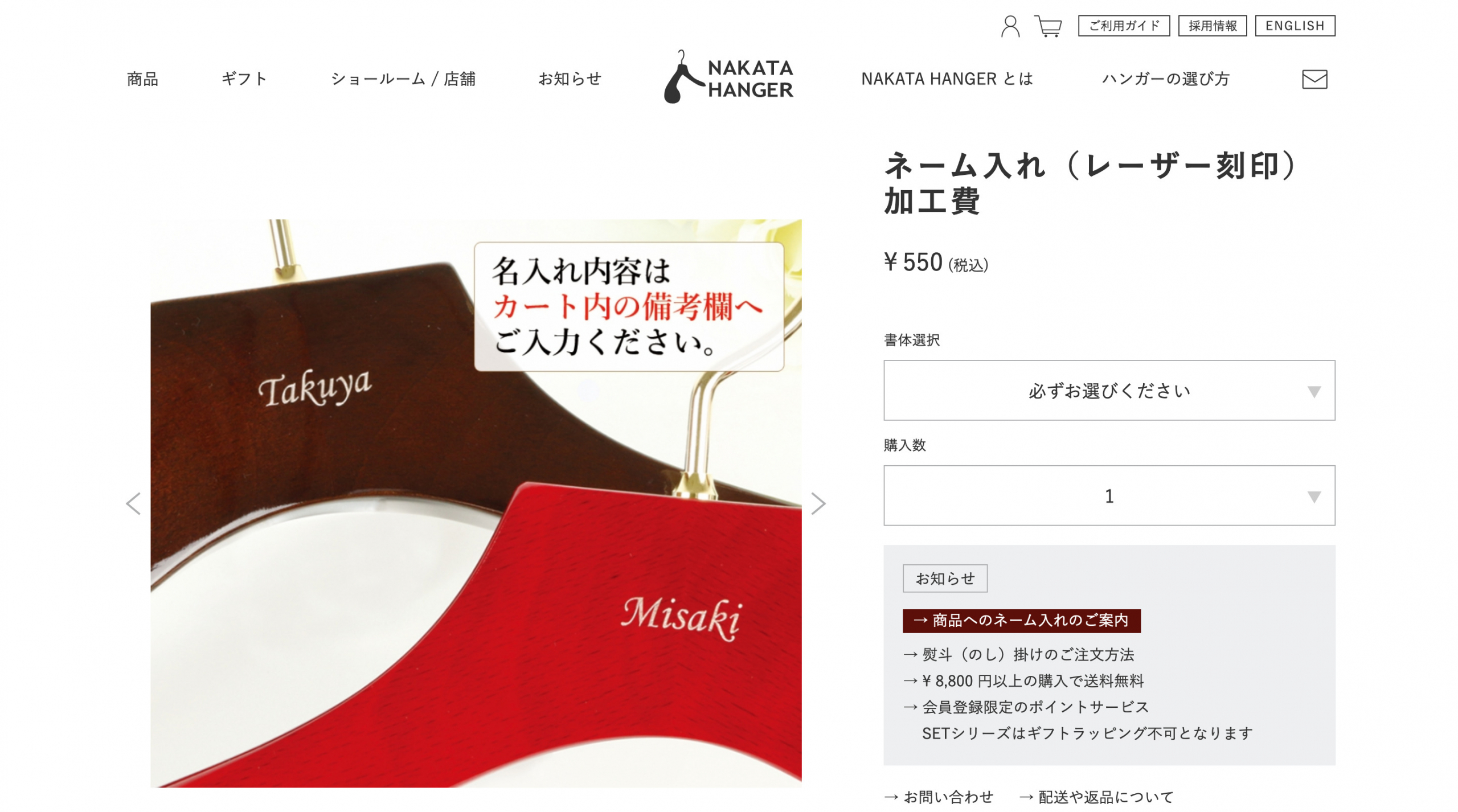 そこで「NAKATA HANGER」のレーザー刻印でネーム入れをするサービスを利用しました。