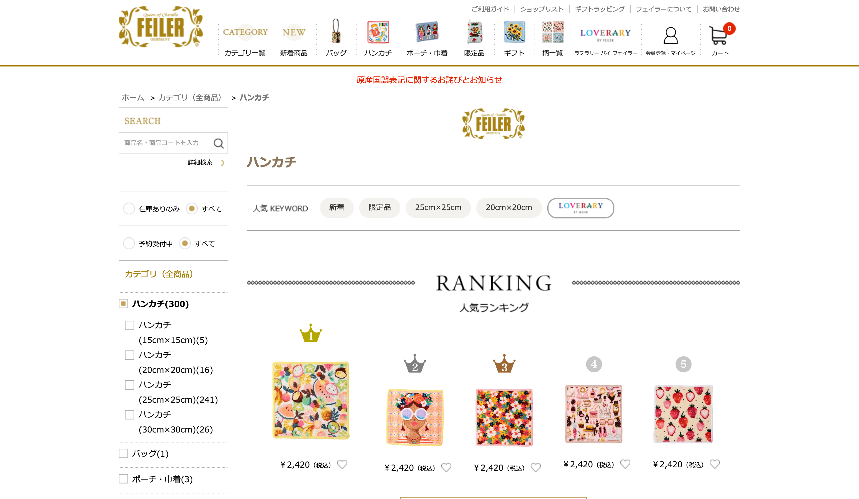 ハンカチとしての相場より少し高いかもしれませんが、良かったら手に取ってみてください。