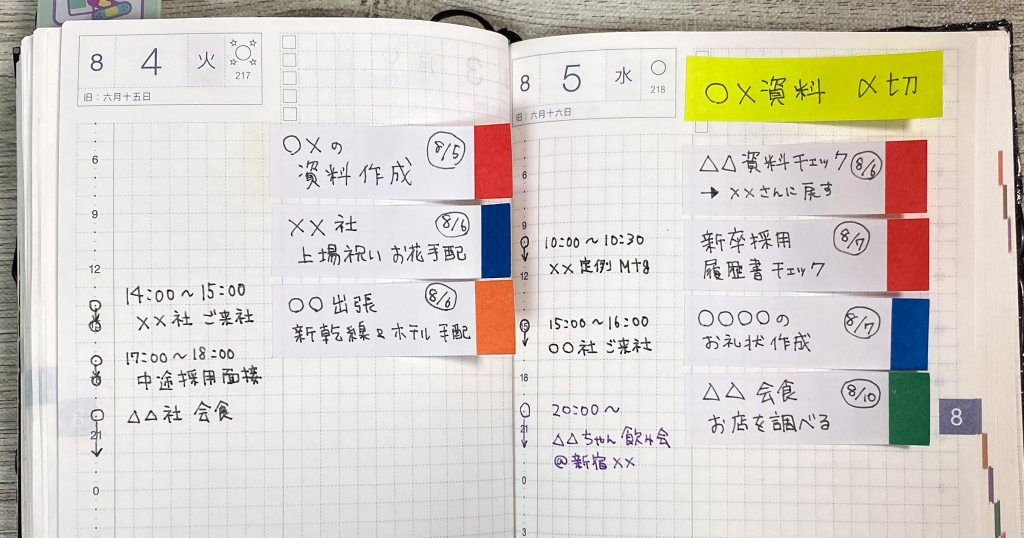 複数の上司を担当されている秘書さんは、上司ごとに色を分けてもよさそうですね。