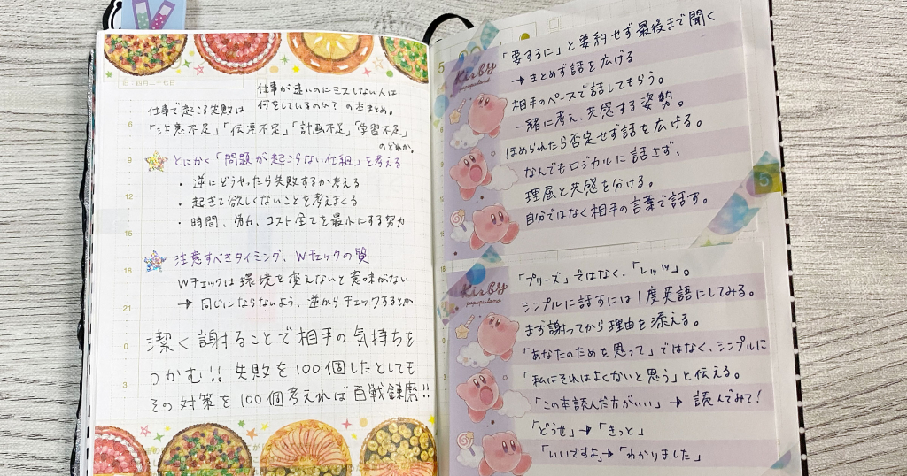 なんだか忙しすぎて手帳管理すらできなかったときや、連休などで空いたページには、読んだ本の感想や覚え書きをメモしています。