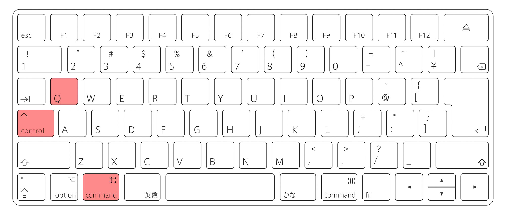 「Control」「Command」「Q」を同時に押すと、画面にロックをかけることができます。